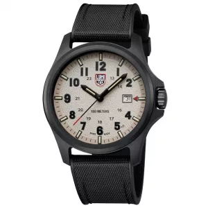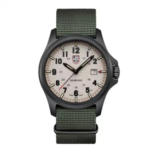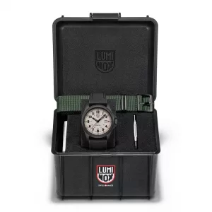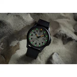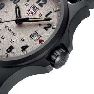 Designed for those who push the limits, the Luminox Atacama Field 1971 is engineered to endure the harshest environments. Inspired by athletes and adventurers who conquer deserts and mountains, this 43mm field watch features a CARBONOX™ case—six times lighter than steel yet incredibly durable. The large warm grey sand-textured dial echoes the rugged terrain it’s built for, while Luminox Light Technology (LLT) ensures constant visibility for up to 25 years, no matter the conditions. A sapphire crystal with anti-reflective coating enhances clarity, and the 100m water resistance makes it adventure-ready. The set includes both a rugged black rubber strap with a textile finish and an additional field green webbing strap, ensuring adaptability on any journey.