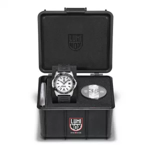 This remarkable wristwatch is part of the Heritage Collection which celebrates Luminox’s 35 years of groundbreaking light technology. For maximum visibility, this timepiece features 16 LLT tubes and a white-textured dial fully coated with Super-LumiNova®, which gives it an aquatic glow when charged and activated in dark light conditions. In addition, the numbers on the bezel are painted with Super-LumiNova®, making this watch Luminox’s most luminous piece to date. Powered by a SELLITA automatic movement, the watch combines a 42mm stainless-steel uni-directional bezel with a black strap and a black ceramic ring insert on the bezel. Whether you’re in the office, catching a wave, or hundreds of meters underwater, this dynamic timepiece is engineered for peak performance.