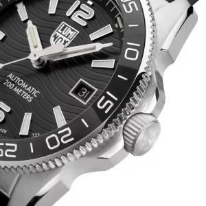 The Pacific Diver series stands out with a sporty look and intriguing fusion of materials. The XS.3101 watch features a black cut-to-fit rubber strap and versatile 42mm stainless-steel case with sapphire crystal and anti-reflective coating. A stainless-steel bezel with a ceramic ring insert completes the design. To evoke the spirit of the ocean, the Pacific Diver Automatic sports a distinct textured black dial with a wave pattern. The intricate SELLITA automatic movement provides a new level of precision powered by the wearer’s movements. Whether you’re in the office, catching a wave, or hundreds of meters underwater, this dynamic timepiece is engineered for peak performance.