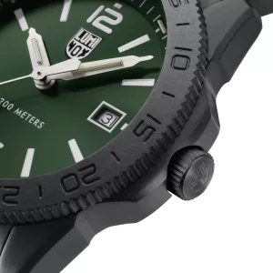 A striking emerald green sunray dial offers a vibrant, high-contrast display that’s as eye-catching as it is functional. Equipped with Luminox Light Technology for a constant glow in low light and total darkness, this watch is always ready for the next mission. The versatile black cut-to-fit strap can be cut to any desired length and is designed to fit all wrist sizes. With 200 meters of water resistance, a screw-down crown, and a sapphire crystal with anti-reflective coating, the Pacific Diver is a trusted companion below and above water.